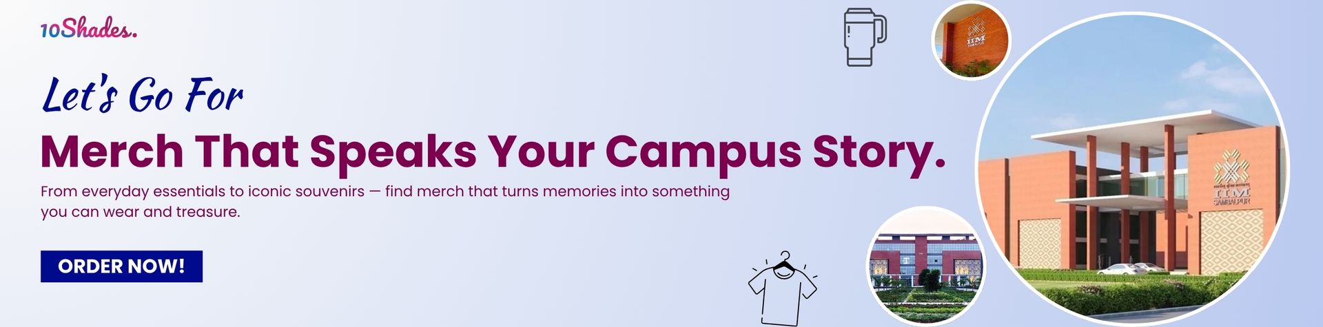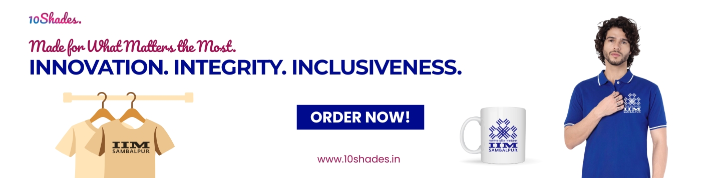 10 Shades is the merchandise and fashion store of IIM Sambalpur, offering apparel and accessories like T-shirts, hoodies, mugs, bottles, diaries and more, Representing The Handcrafted IIM and its values of Innovation, Integrity and Inclusion. 10 Shades also provide customization and T-shirt printing services for all your merchandise needs.