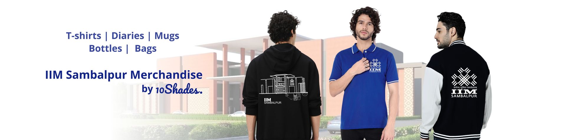 10 Shades is the merchandise and fashion store of IIM Sambalpur, offering apparel and accessories like T-shirts, hoodies, mugs, bottles, diaries and more, Representing The Handcrafted IIM and its values of Innovation, Integrity and Inclusion. 10 Shades also provide customization and T-shirt printing services for all your merchandise needs.
